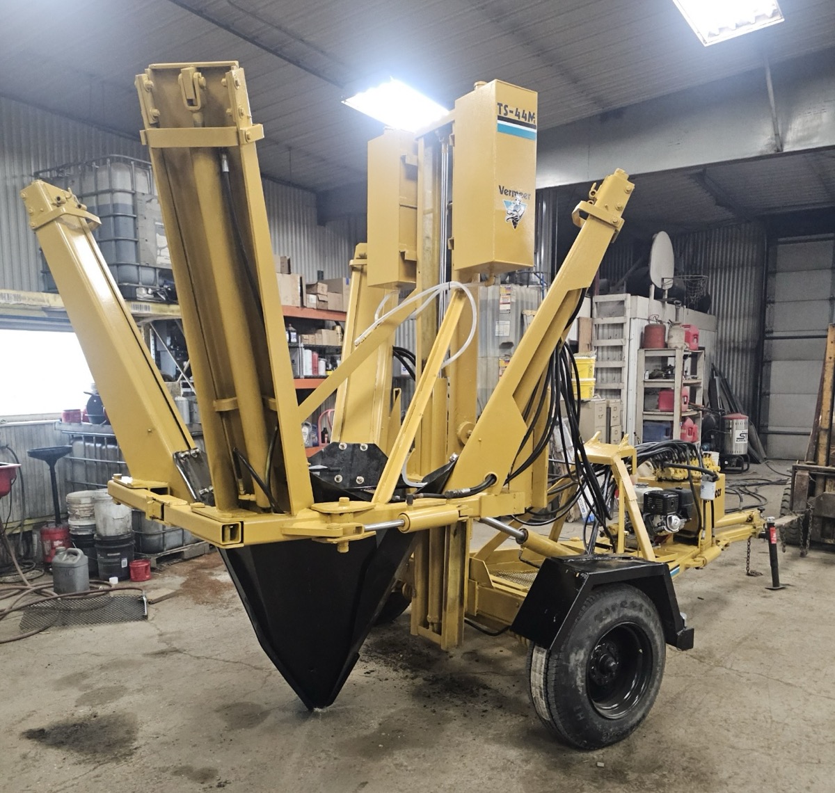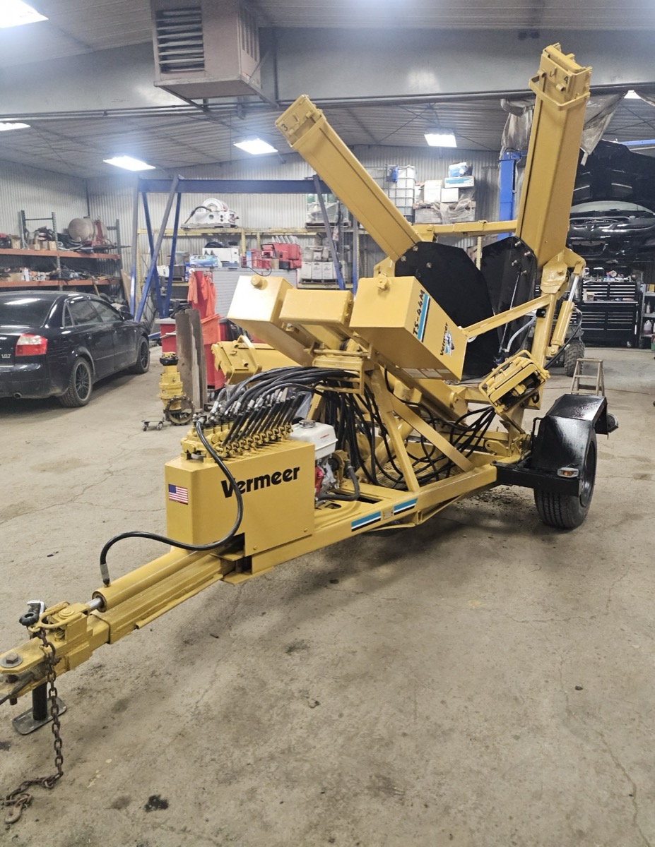 Used Equipment Description: Vermeer 44in trailer mount tree spade. New motor, tires and most hoses. Cylinders resealed. New paint and decals. Everything works, including the spade water system. Has hydraulic swing & tongue extension to position on a 4.5 inch diameter tree.